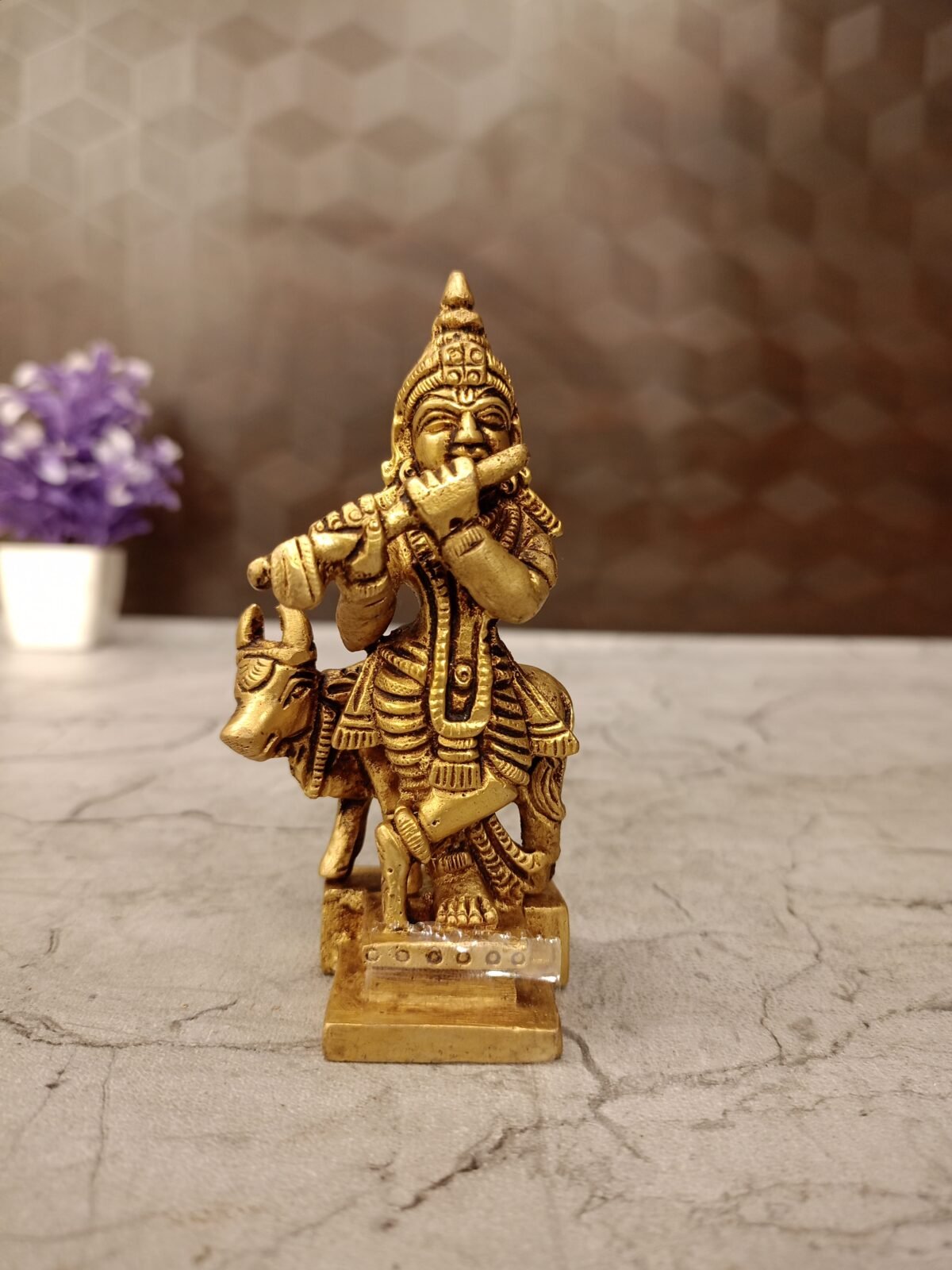 Brass Fine Art Cow Krishna Statue is very good for placed on Home.