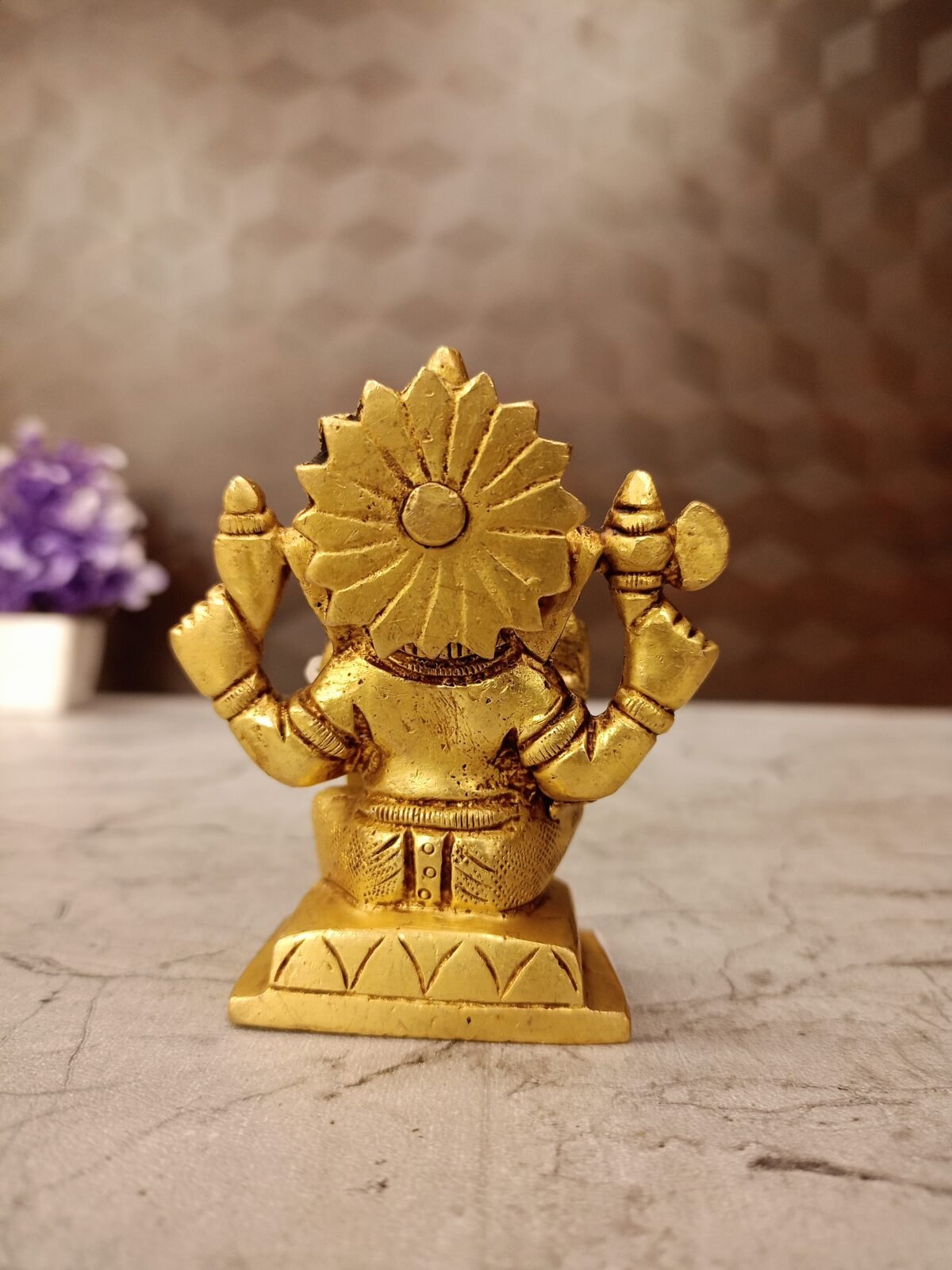Brass Ganesha is gives good health and wealth. This is very unique and Handicraft idol.