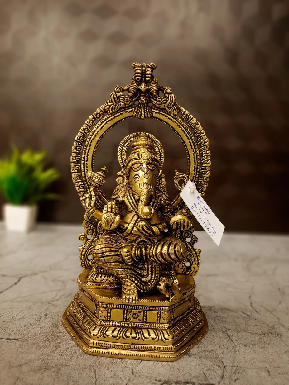 Premium Brass Ganesha with Arch Idol – A Symbol of Prosperity and Blessings