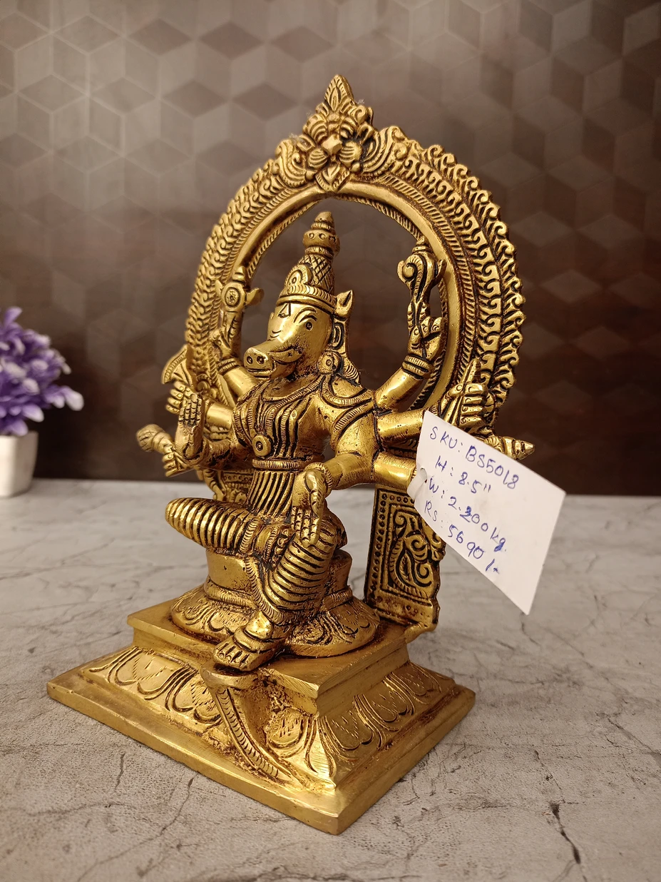 Made from high-quality solid brass, this sacred idol features intricate carvings and a beautifully designed arch that enhances its divine presence. Ideal for home temples, pooja rooms, offices, and spiritual spaces, this authentic Varahi statue radiates positivity, courage, and abundance.