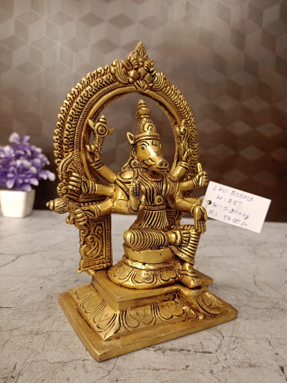 Invoke divine energy and spiritual protection with this Premium Brass Varahi Idol With Arch – 8.5 Inch, exquisitely handcrafted by skilled artisans. Goddess Varahi Amman, one of the powerful Sapta Matrikas, symbolizes strength, protection, and victory over negative forces.